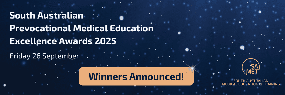 The SA MET Unit expresses sincere gratitude to everyone who attended the third annual South Australian Prevocational Medical Education Excellence Awards on Friday, 26 September 2025, at SkyCity Adelaide. It was incredible to see everyone from across the Local Health Networks, the Department for Health and Wellbeing, and those involved in prevocational education come together to connect, share, and celebrate! Huge congratulations to all the nominees and well done to all the winners. We extend our sincere gratitude to the generous sponsors of the 2025 South Australian Prevocational Medical Education Excellence Awards. Your support plays a vital role in recognising and celebrating outstanding contributions to medical education and training.