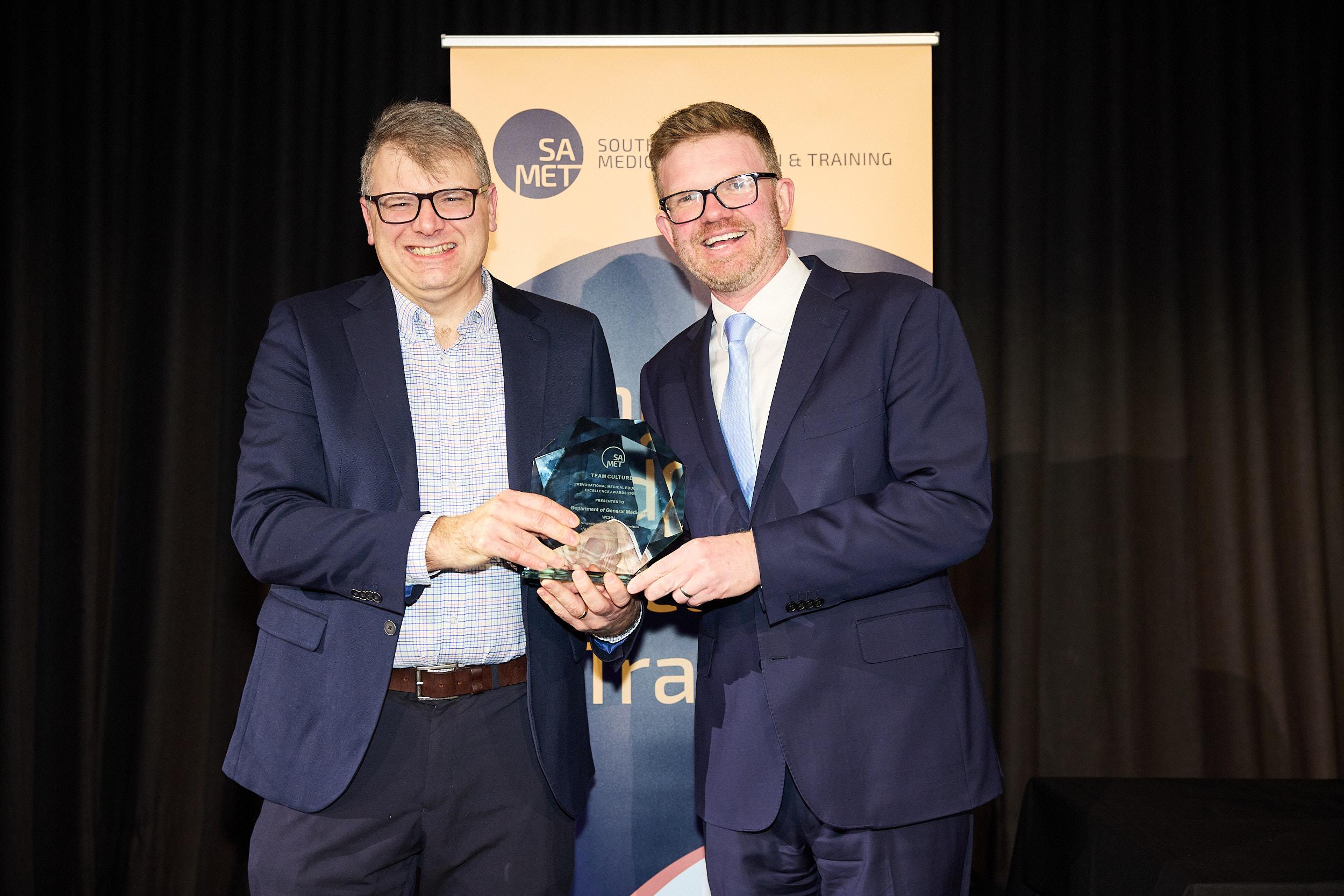 Department of General Medicine, Women’s and Children’s Health Network, accepting their award from the Hon Chris Picton, Minister for Health and Wellbeing.