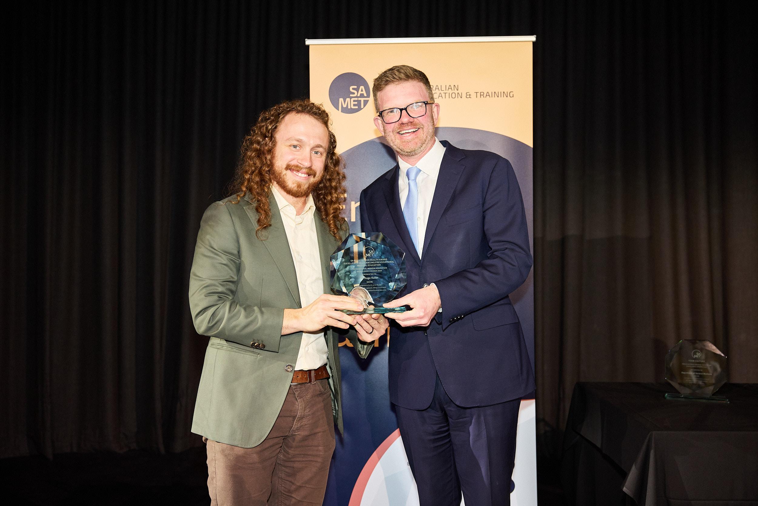 Dr Hugo Keller, Women’s and Children’s Health Network, accepting his award from the Hon Chris Picton, Minister for Health and Wellbeing.