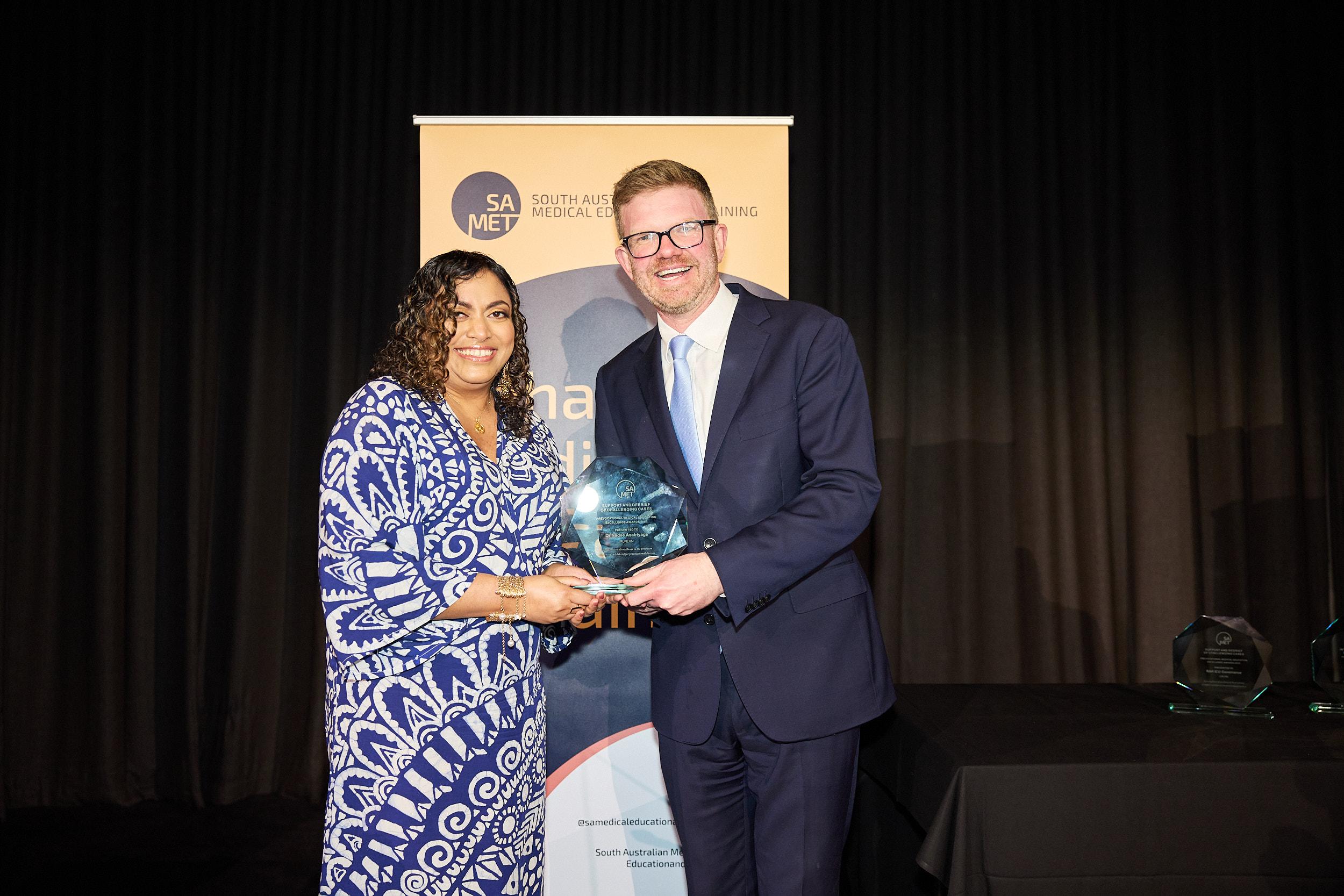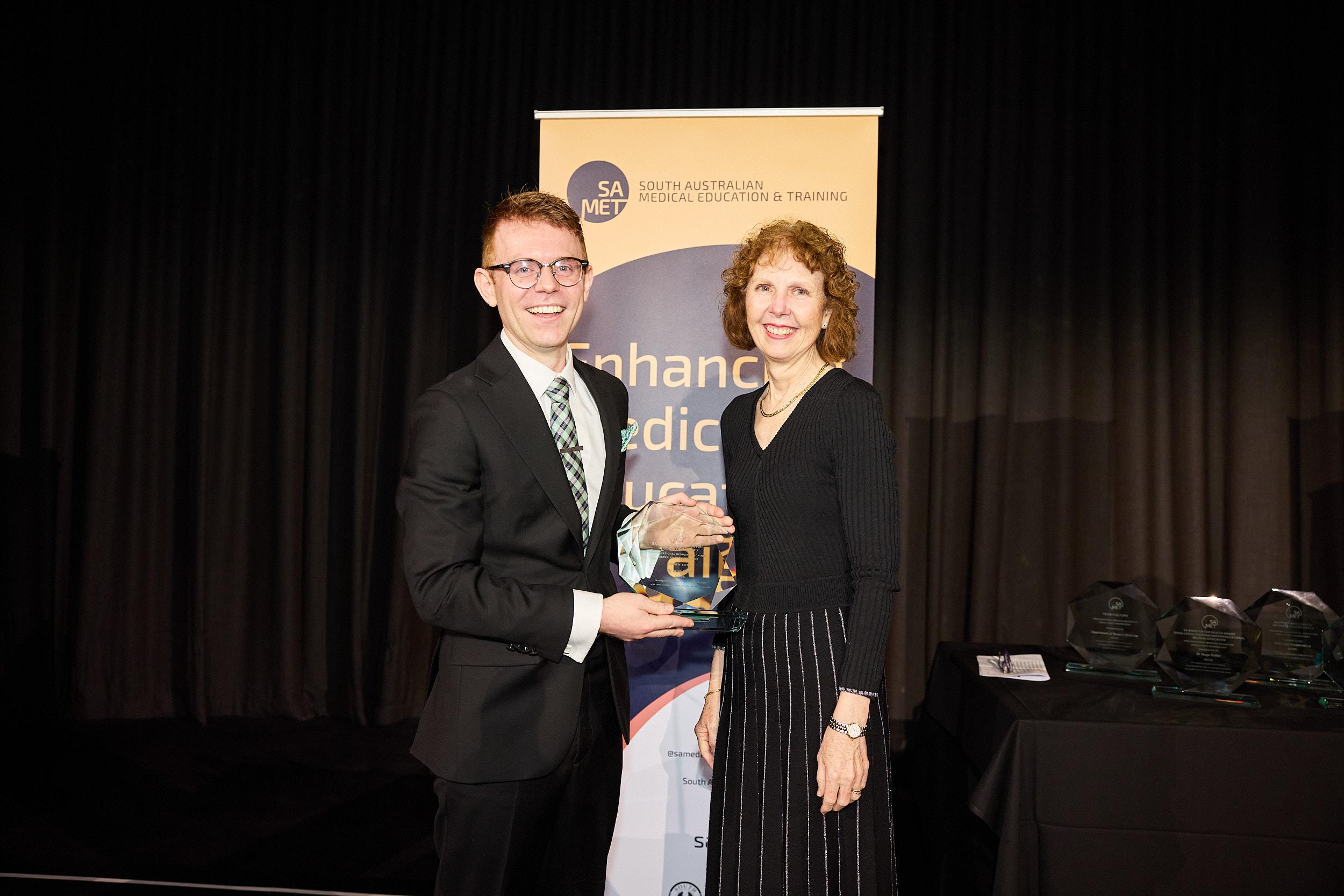 Dr Luke Vater, Northern Adelaide Local Health Network, accepting his award from Dr Robyn Lawrence, Chief Executive for Health and Wellbeing.