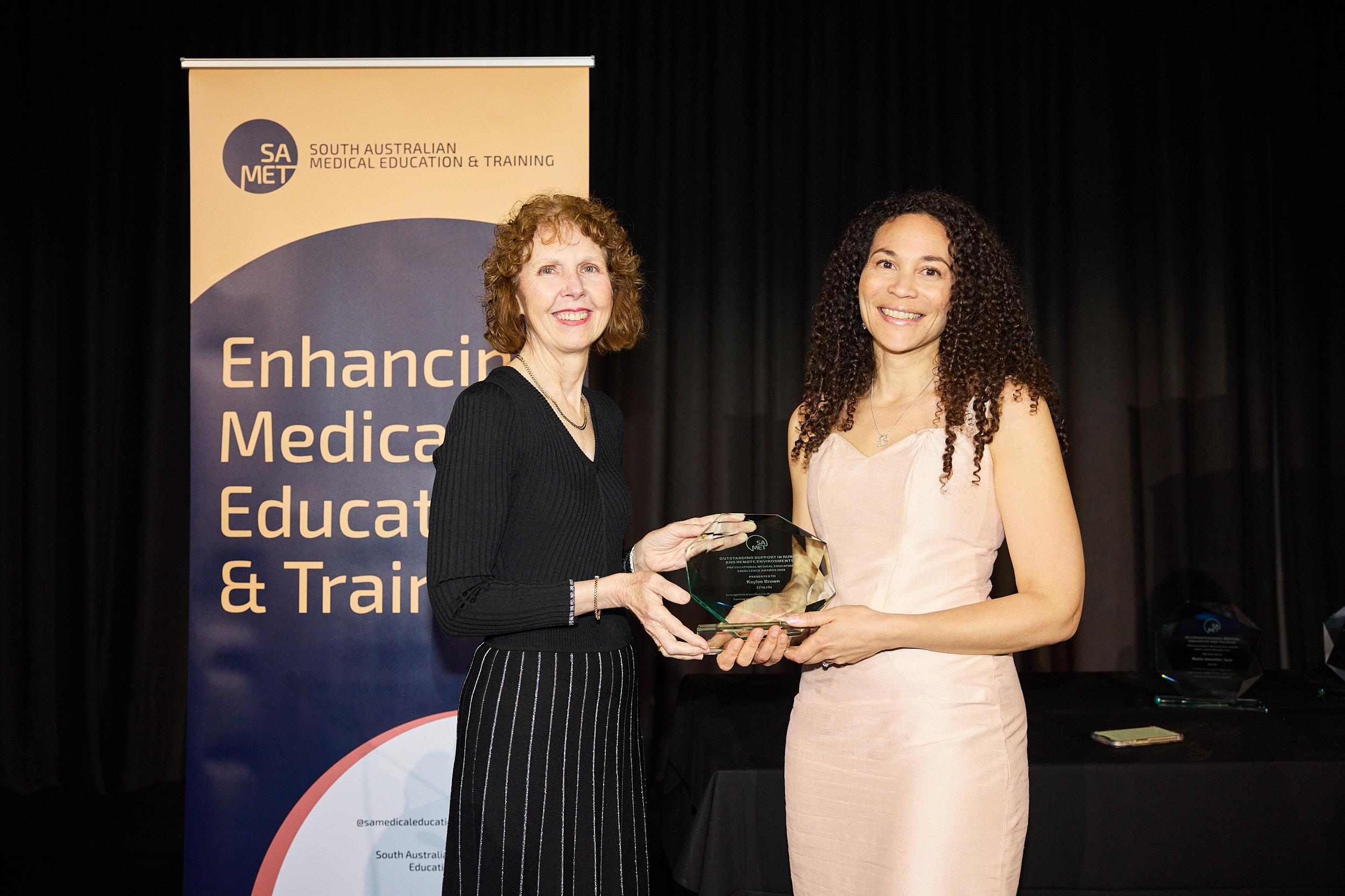 Kaylee Brown, Eyre and Far North Local Health Network, accepting her award from Dr Robyn Lawrence, Chief Executive for Health and Wellbeing.